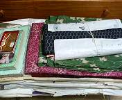 先日倉庫で見つけた母のお見合い写真をきっかけに着物に興味がわき、来年は絶対に着付けを習おうと決めた。何日か着物について調べ物をした後問い合わせると、年内の教室は終了していたけど、ぜひ年明けに見学にいらっしゃいとのこと。1人で着れる様になるまで黙っていた方が粋なんだろうけど言わせていただきたい。なぜなら今日、伯母から着物を受け継いだから(><)。うちの母ちゃんと違ってちゃんと保管してそうだった伯母に「着つけ教室に通いたいから練習用の着物がいるの。」と連絡。着ない着物があるから見にきんさいと言われて行ってきたのだ。伯母には娘が二人もいるのにその二人ともが着物に興味がないらしい。ラッキー。地味なのも派手なのもいろいろあったけど、はっきり言って今はどんなでもありがたかった。とにかく1人で着れるようになるかもしれないという夢で頭がいっぱいだから。一通り選ばせてもらったあと、着物のたたみかただけ教えてもらった。そう、たたむことすらできなかったの、お恥ずかしい。